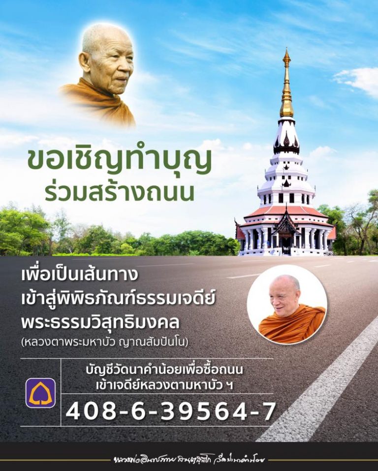 ข่าวบุญ: บุญร่วมสร้างถนน เพื่อเป็นเส้นทางเข้าสู่พิพิธภัณฑ์ธรรมเจดีย์ พระธรรมวิสุทธิมงคล (หลวงตาพระมหาบัว ญาณสัมปันโน)