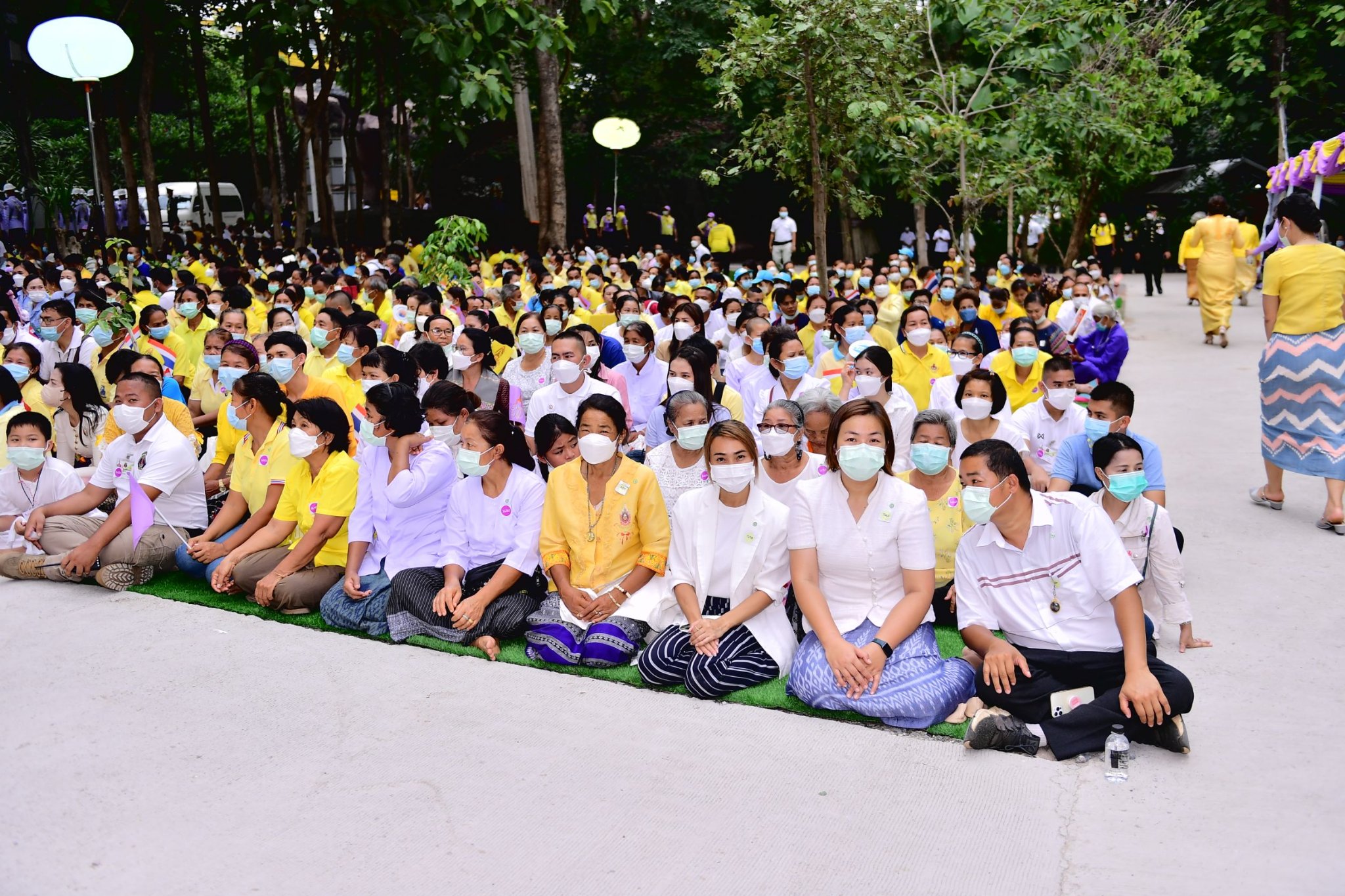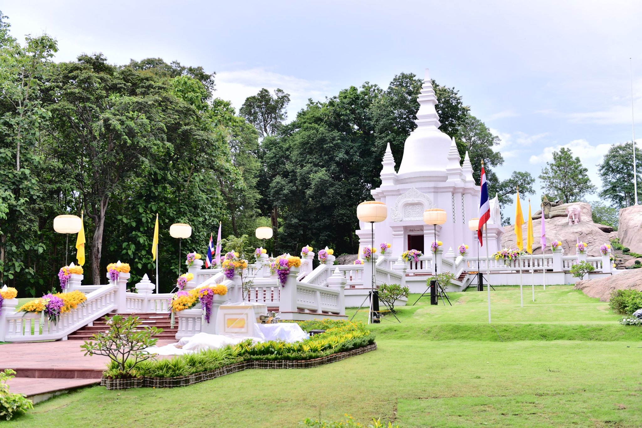 “งานของพวกเราที่เตรียมพร้อมที่จะรับเสด็จพระบาทสมเด็จพระเจ้าอยู่หัว พระบรมราชินี ที่จะสมโภชเจดีย์พิพิธภัณฑ์ของหลวงปู่บุญเพ็ง เขมาภิรโต และไปทรงกราบคารวะเจดีย์ กุฏิของหลวงปู่ขาว และขึ้นไปทรงสรงอัฐิธาตุของหลวงปู่ขาว ที่พระองค์เสด็จมาคราวนี้ก็มี ๓ อย่างนะลูกหลาน จุดใหญ่ก็คือสมโภชเจดีย์ของหลวงปู่บุญเพ็ง เขมาภิรโต จุดที่ ๒ ก็คือไปทรงกราบคารวะเจดีย์ของหลวงปู่ขาว ที่สมัยที่พระองค์ทรงเป็นเจ้าฟ้าชาย ได้ทรงชุดทหารมากับในหลวง ร.๙ ไปทรงกราบหลวงปู่ขาว อนาลโย เราก็ยังมีรูปภาพอยู่